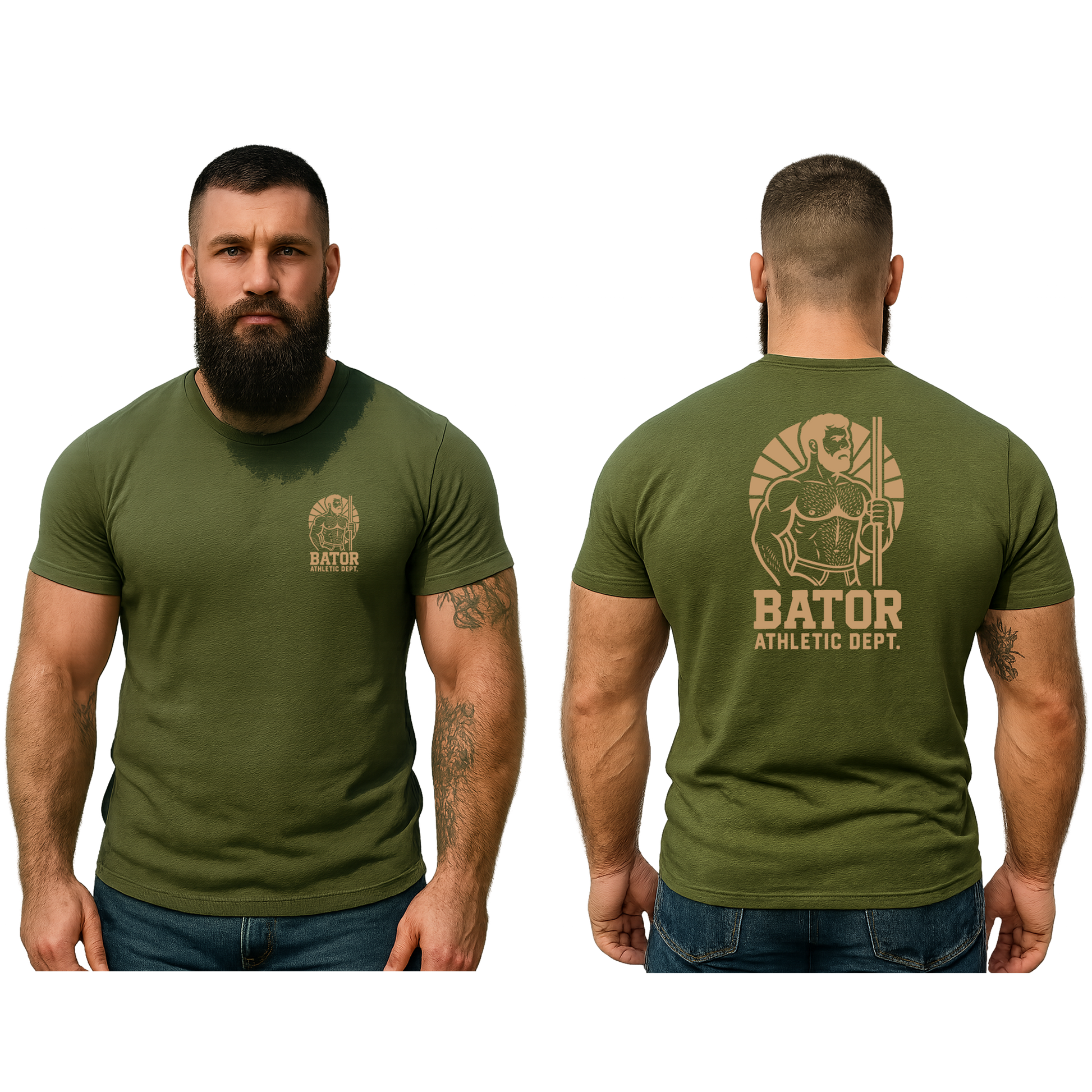 Whether you’re hitting the gym, running drills, or just flexing your everyday stamina, this tee carries the clean, bold energy of the Bator Athletic Co. brand. Comfortable, rugged, and ready for action—just like the man wearing it.